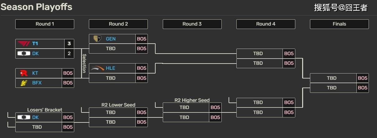 随着DK拿到最后一张季后赛门票,LCK季后赛阶段,于9月10日正式拉开帷幕。T1选择了DK,KT选择了BFX。